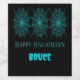 Get into the spooky spirit with the "Happy Halloween" neon blue spiderweb design against a deep black background. This electrifying pattern adds a modern twist to Halloween decor, casting an eerie yet captivating glow for a hauntingly stylish celebration.
