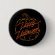 Halloween button featuring a neon sign style typography of 'Happy Halloween' inside of a pumpkin.