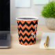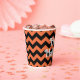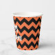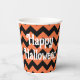 This paper cups with orange and black chevron design has a Happy Halloween message for your party guests.
