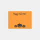 Happy Halloween orange Post-it® notes with pumpkin head carving. Make your own sticky notes for the Holidays. Funny design with script typography template and jack o lantern. Great for school teacher, kids, home, office, family, party and more.