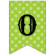 This festive "Happy Halloween!" holiday bunting banner features orange, purple, green, and black colors, patterned stripes and polka dots, decorative text, and a smiling jack-o-lantern pumpkin accent.