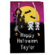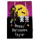 This fun and spooky gift bag can be personalised with a name or title, such as daughter, granddaughter, niece, friend etc. It features cute mummies beside a crooked haunted house. In the background is a full moon with bats and a pink night sky with stars. This is perfect for Halloween.