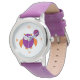 This awesome watch features a cute owl with its eyes shut as if it is sleeping and cute claws. Its body is purple and its wings, ears and claws and beak are orange. The owl is holding a balloon with “happy Halloween” written on it and is ready to party.