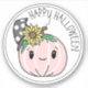 Pink pumpkin and sunflower polka dot with witch hat Happy Halloween stickers.