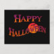 Happy Halloween greeting with a spectral bat flying across a full October Moon.