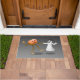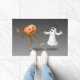 A cute Halloween Doormat with a pumpkin and ghost who have started the costume party and started dancing.