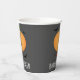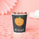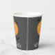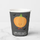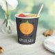 Halloween paper cups featuring a smiling pumpkin with bats on a grey background. The cups also include the words “Happy Halloween” that are customisable. Add these to your Halloween party or Trick or Treat event.