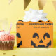 A simple black and orange Halloween design featuring a minimalist jack-o'-lantern face with carved eyes, nose and a smiling mouth. This bold silhouette style captures the spirit of Halloween with a clean, playful twist. Perfect for fans of minimal pumpkin faces and spooky season simplicity. There are also two personalizable text areas. The colours of this design can be changed to any other colours, if wished.
