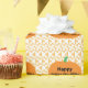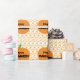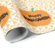 Festive Happy Halloween pumpkins sit atop a custom digitally designed pattern of streaming abstract pinwheel shapes.