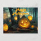 Happy Halloween Pumpkins and Spider Web Postcard