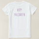 This Halloween t-shirt features a "Happy Halloween" graphic on the back, and a not so scary purple spider with spiderweb on the front. Keep, customise or delete the copy.