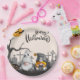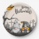 Happy Halloween Retro Gnomes in Cemetery Paper Plate