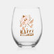 Happy Halloween| Retro Polka Dot Pumpkin Stemless Wine Glass