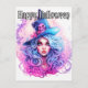 This creative postcard features an illustration of a sinister witchy woman. This postcard would make a truly delightful Halloween greeting for best of friends and family.
