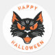 Happy Halloween Scary Black Cat Face Classic Round Sticker