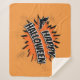 Happy Halloween comic style illustration with text design, bat and stars decoration on halftone background. It is possible to change the background colour and to add different one to the design with your choice.