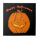 Cute, smiling pumpkin with message, "Happy Halloween" is featured on this ceramic holiday tile. Use as a coaster, trivet, or Halloween decoration, makes a great gift for Fall, birthdays or the office too!