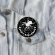 Happy Halloween spooky black and white spider crawling on a cobweb button badge. The text is customisable so you can add your own message