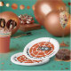 A happy grey spider with big eyes hangs by his thread against a white web with orange background on these cute Halloween party paper plates. At the bottom on a white circle border is curved black text that says HAPPY HALLOWEEN. Be sure to see the matching spider themed Halloween products in our store. *Clip art used in this design is copyrighted by Encore Software, Inc., which permits use to its licensors. All rights reserved.