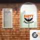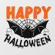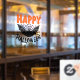 This fun Halloween window cling features text image "Happy Halloween" with spooky bat, spider web, and cemetery tombstones. Colours are editable. Perfect for the holiday season.