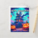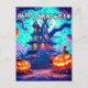 This creative Happy Halloween postcard features an illustration of a creepy dark mansion after midnight, guarded by various illuminating pumpkins. Please feel free to adjust all the available options as you wish.