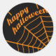 Happy Halloween Stickers with Spider Web in Halloween colours of orange and black. Halloween stickers make great trick or treat gifts, and are fun for decorating all your Halloween projects.