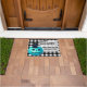 This cute Happy Halloween doormat has a teal pumpkin image and a message about non-food treats for kids with food allergies. The black and white buffalo plaid background gives a cute country farmhouse feel. Greet trick or treaters with a welcome mat that lets them know they can find allergy-friendly treats at your house.