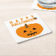 Happy Halloween Text and Pumpkin on White Square Paper Coaster