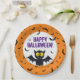 Happy Halloween smiling vampire bat featuring a full moon with all his bat friends flying to to say "HAPPY HALLOWEEN!"