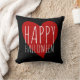 Happy Halloween w/ Red Heart Black & Grey Stripes Throw Pillow