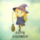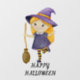 Fun with Purple Witch green eyes wearing a witch hat and a big purple bow and. Ideal for a Halloween party, Elegant, modern, and fun.