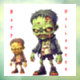 Father and son zombies are on this window cling for Halloween with bones coming out of their faces