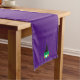 Dress up your table with this fun Halloween-themed runner! A cute cartoon-style green witch face has a pointy black hat, pointy ears, orange hair, and a happy smiling expression, on both ends of a purple runner. Great for Halloween parties, or all October long!