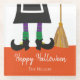 Happy Halloween Witch Legs & Broom Personalised Glass Coaster