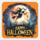 A Cute scary Fall - Halloween design with a Witch flying on her broom and some bats in the moonlight.