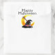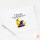 Happy Halloween sticker decorated with witches hat moon and broom. Great for halloween can also be used as envelope seal for invitations or greeting cards.