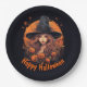Happy Halloween with Witch and Pumpkins Paper Plates