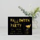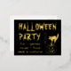 HALLOWEEN PARTY invitation with cat and jack-o-lantern. The 3 lines of text in the lower left can be customised.