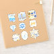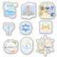 Hanukkah sticker sheet. This stickers are perfect for your needs in card making with children or to send to family. They become an essential when you are making holiday cards for donations to f seniors and hospitals. They beautiful with images that celebrate the great miracle that happen. they are colourful and you can even chose the size that is convenient for you. Good to give to grandkids or to put on your note books and adorn water bottles. Is not easy sometimes to find Hanukkah stickers so that is why I put this sheet with 6 beautiful ones. They express "Happy Hanukkah, Peace, Light, Joy, and funny quotes like Let's Get Lit and Love You Latkes". The colours are blues and browns from light to darker and some yellows and beige.