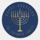 Happy Hanukkah 'Blue Gold Menorah Holiday Classic Round Sticker