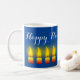 Symbolise the Miracle of Hanukkah: Our design showcases the nine candles, symbolising the miracle of Hanukkah. The bright flames set against the deep royal blue are a visual representation of the joy and light this holiday brings. Eight candles symbolise the number of days that the Temple lantern blazed; the ninth, the shamash, is a helper candle used to light the others. Customise the mug with the current year.