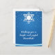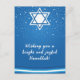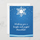 This Hanukkah card features a serene blue background adorned with delicate white snowflakes, creating a festive and peaceful atmosphere. At the centre, a prominent white Star of David stands out, symbolising the holiday’s significance. Below the star, the customisable text “Wishing you a bright and joyful Hanukkah!” is written in elegant cursive, conveying warm holiday wishes. Horizontal lines at the bottom add a touch of sophistication.