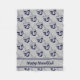 Modern silver grey FLEECE BLANKET to celebrate HANUKKAH. Silver grey and navy colour theme with all over midnight blue DREIDEL print. There is customisable placeholder text which says HAPPY HANUKKAH so you can personalise with your own greeting and/or name (of similar length). Matching home decor and other items are available in the HANUKKAH Collection by Berean Designs.