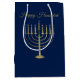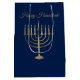 Happy Hanukkah Faux Gold Menorah Blue Holiday Medium Gift Bag