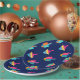 Happy Hanukkah Party Jewish Holiday decorative Dreidel. Hanukkah spinning top. Jewish Holiday Chanukahs Decoration with traditional Chanukah decorative toys, Hebrew letters - Navy Blue color, colorful dreidels Chanukah wooden toys (spinning top), star of David and neon blue glowing lights illustration. Hanukkah Festival of lights Event Decoration. Jerusalem, Israel. Crafts & Party Supplies > Party Supplies > Tableware > Paper & Party Plates Judaica Modern Design. For a festive Hanukkah 2025 table setting.