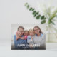 Elegant Hanukkah Holiday Photo card with decorative typography over full bleed photo. Transparent gradient overlay (optional) for light photos. Custom easy edit holiday event invitation on back with snowflakes border.