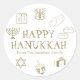 Happy Hanukkah gold white custom name gift favour Classic Round Sticker