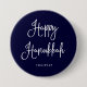 Happy Hanukkah | Handwritten Script on Navy Blue 7.5 Cm Round Badge