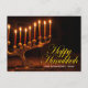 Happy Hanukkah - Illuminated Nine Candle Menorah Holiday Postcard
