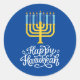 Happy Hanukkah Menorah Classic Round Sticker. Choose the size of the sticker from the options menu.